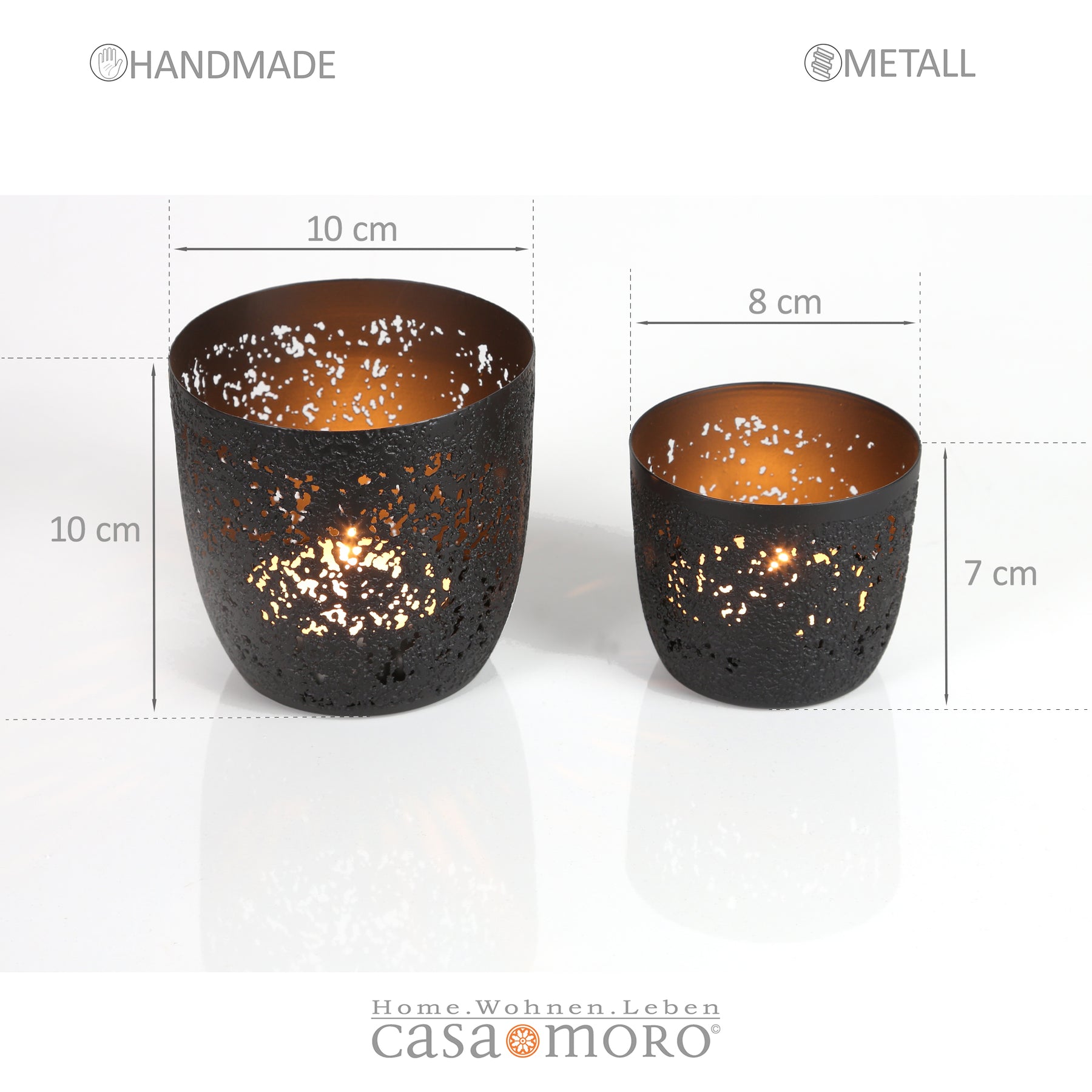 Il gioco della luce riflessa e dei motivi traforati crea un'atmosfera speciale, ideale per Decorazione autunnale, Decorazioni natalizie o miti serate estive. Anche come Decorazione di nozze o Idea regalo Questi portacandele colpiscono per la loro semplice raffinatezza e versatilità.