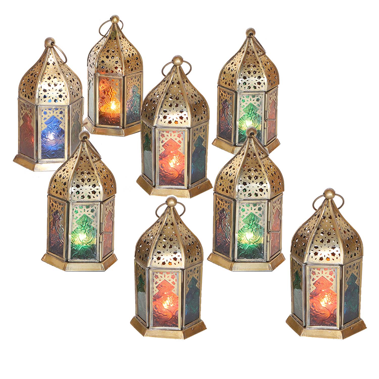 Orientalische Windlichter Nael Multifarbig im 8er Set aus Marokko.
