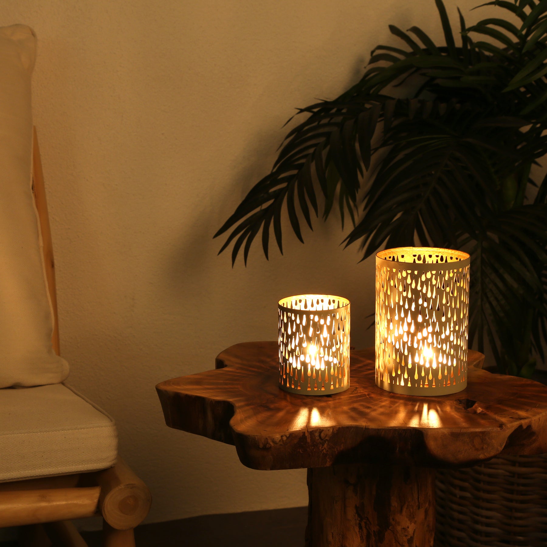 Die creme-weiße Oberfläche und die goldfarbene Innenseite verleihen den Windlichtern einen modernen und edlen Look. Sie fügen sich nahtlos in minimalistische und moderne Einrichtungsstile ein. Ob im Wohnzimmer auf dem Couchtisch oder Sideboard, im Schlafzimmer auf dem Nachttisch, im Esszimmer als stilvolle Tischdekoration oder als elegante Tisch-Dekoration – diese vielseitigen Kerzenhalter passen perfekt in jede Umgebung.