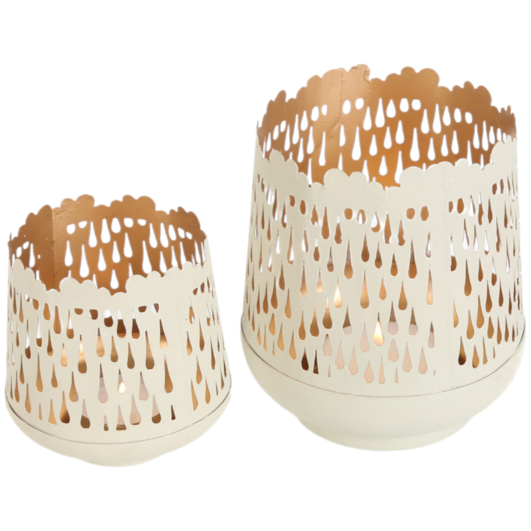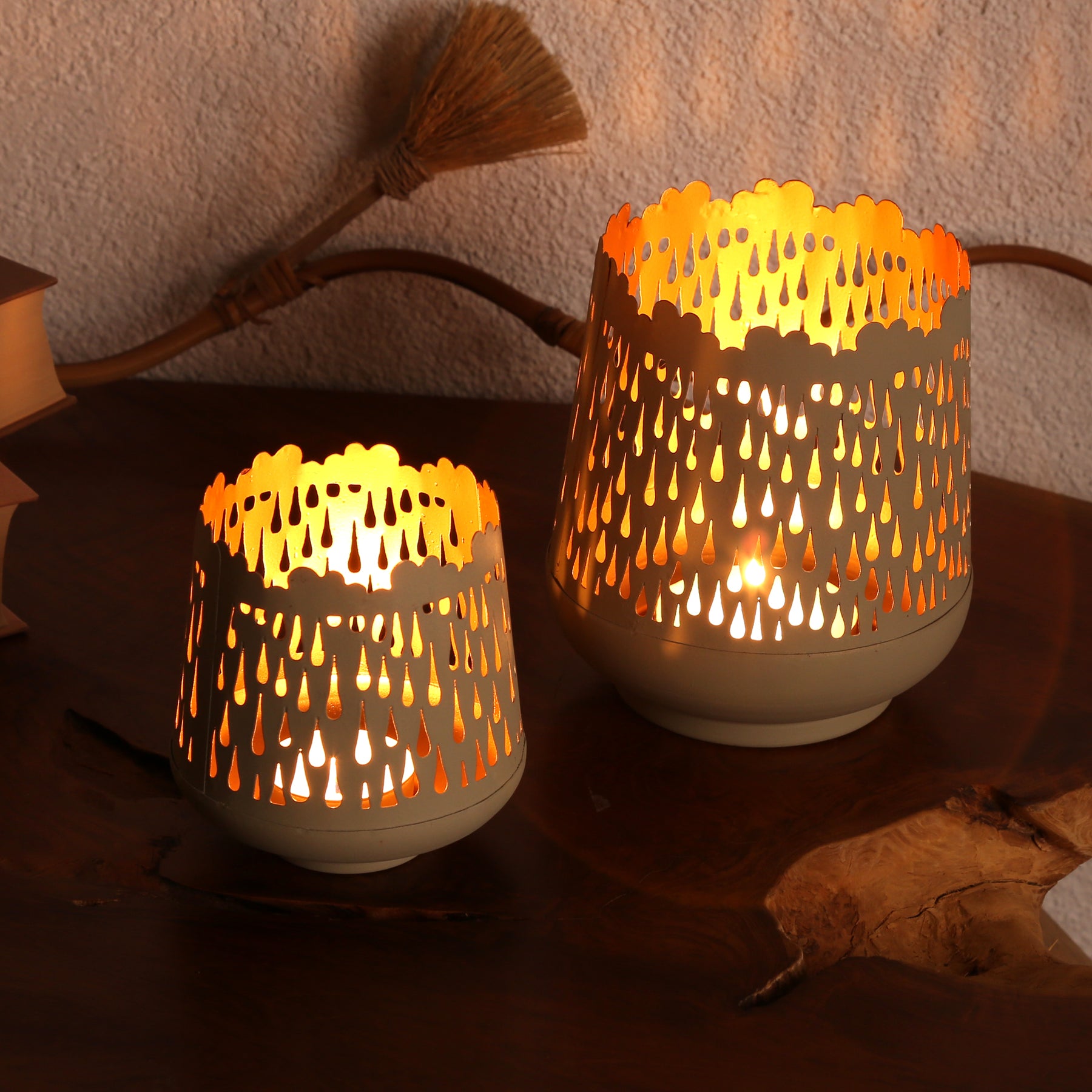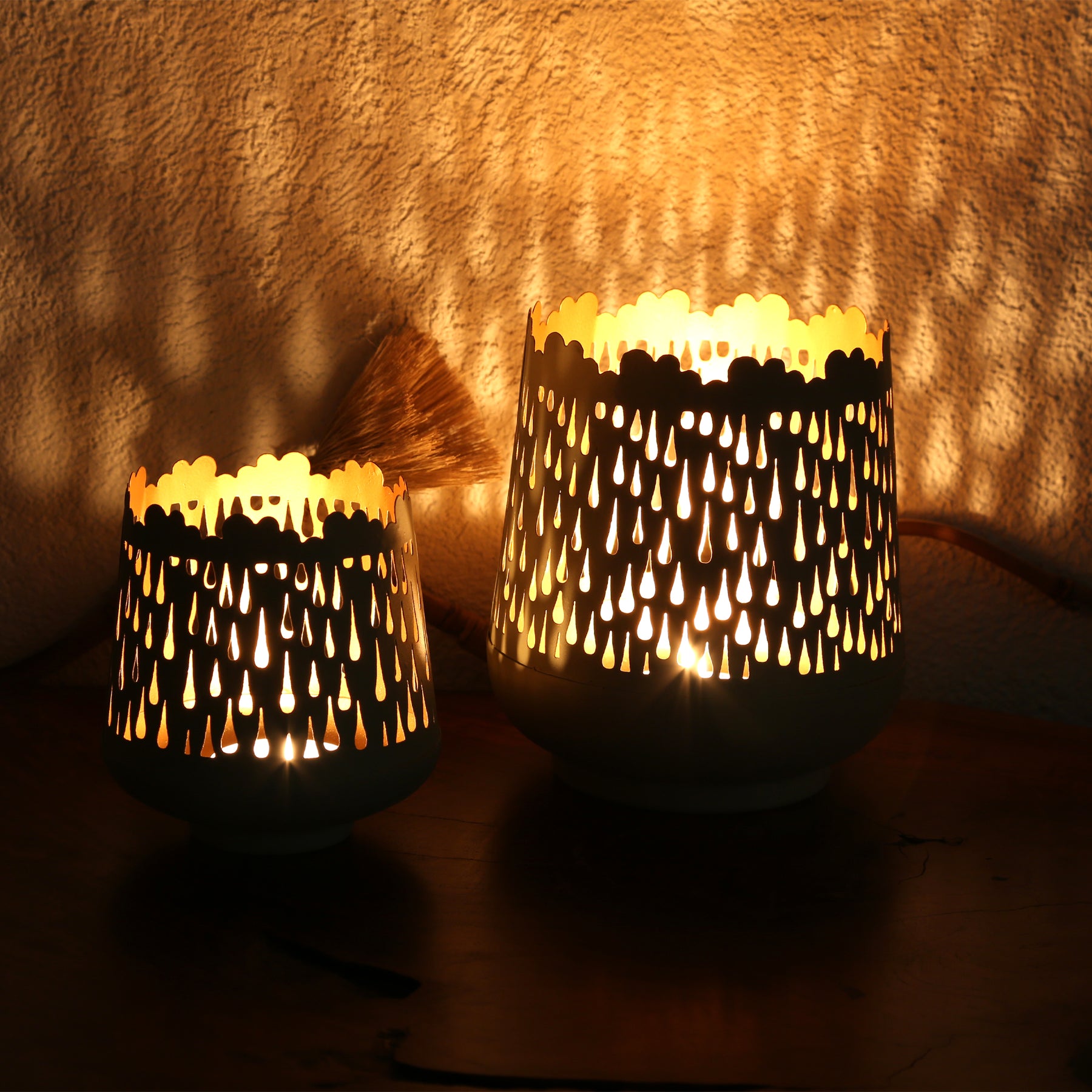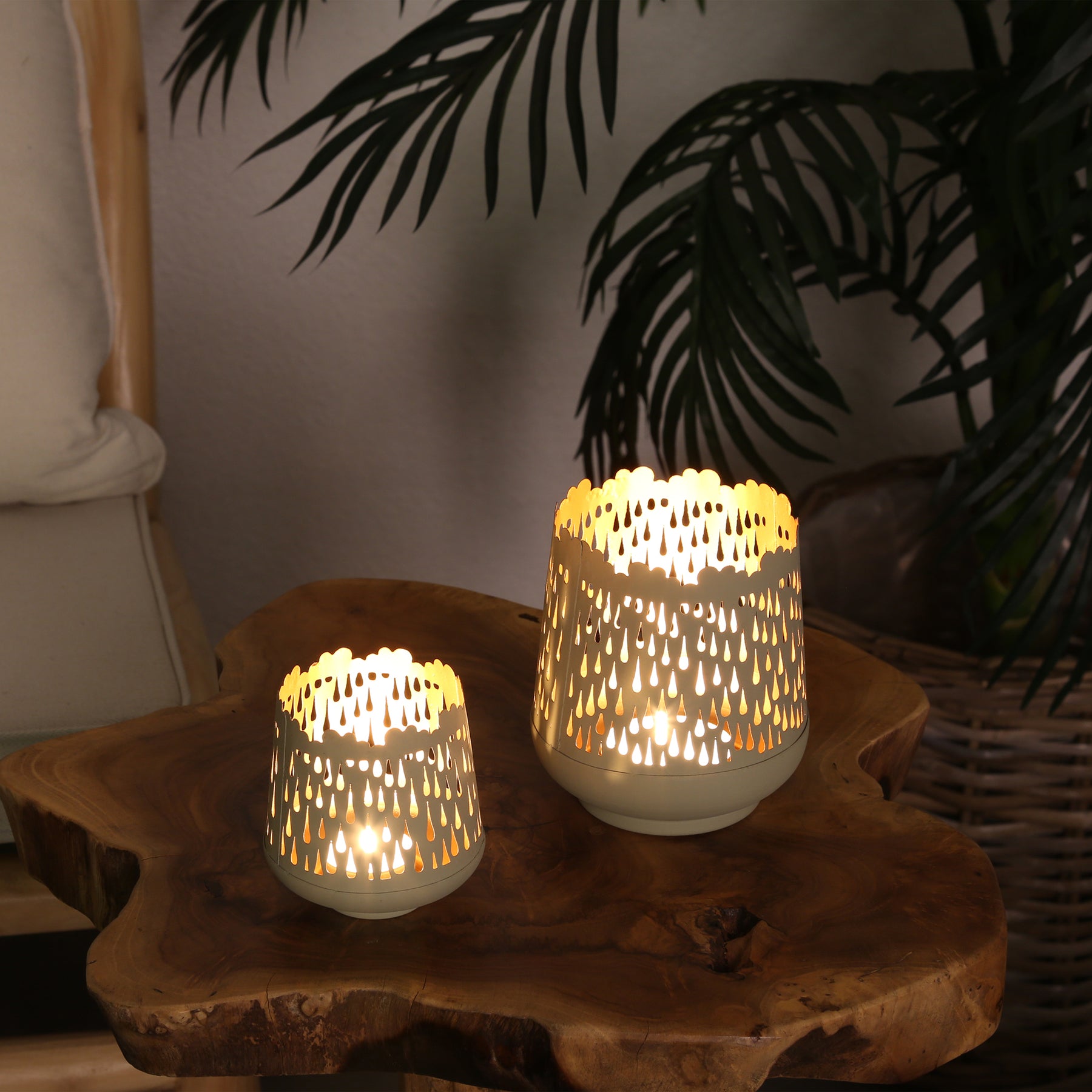 Stilvolle Lichtakzente. Bereichere dein Zuhause mit diesem zauberhaften handgefertigten Teelichthalter-Set, das mit seinem einzigartigen Tropfenmuster für ein faszinierendes Spiel aus Licht und Schatten sorgt. Die außergewöhnliche Gestaltung und das warme Licht schaffen eine behagliche Atmosphäre und verleihen jedem Raum eine besondere Note.