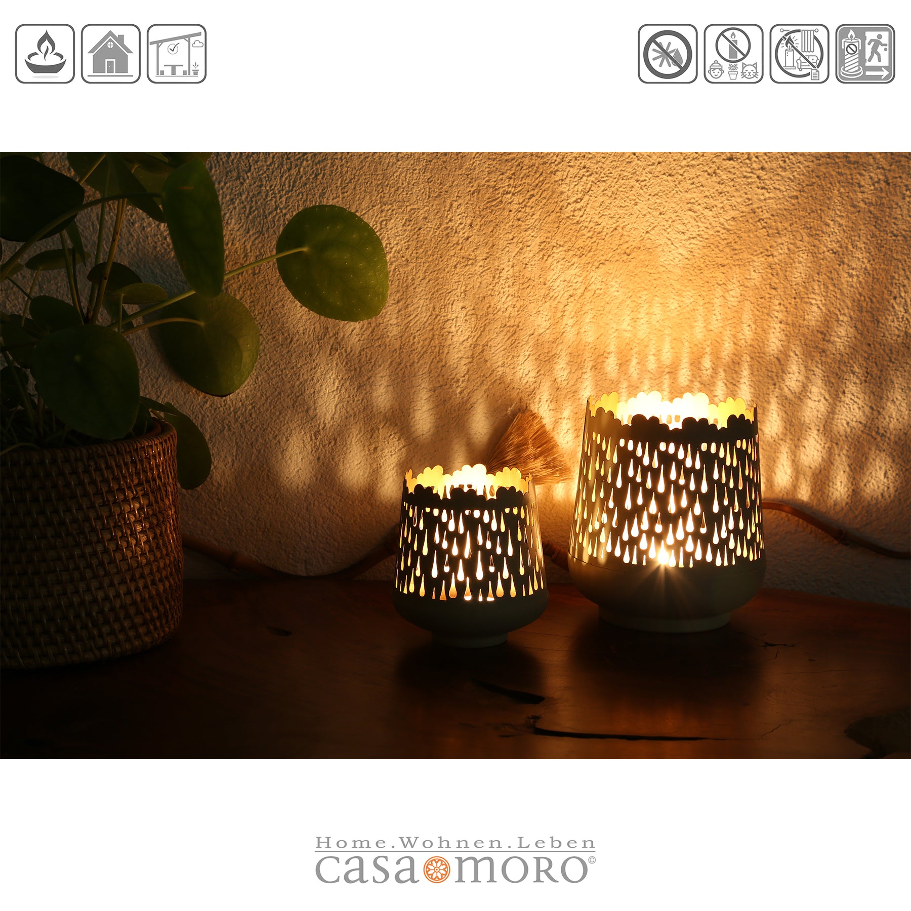 Mit ihrer creme-weißen Oberfläche und der goldfarbenen Innenseite fügen sich die Windlichter harmonisch in verschiedene Einrichtungsstile ein. Ob modern, Skandi, Shabby Chic oder Minimalismus – diese eleganten Accessoires sind ein stilvolles Highlight. Platziert auf dem Couchtisch, der Fensterbank, dem Sideboard oder dem Esstisch, ziehen sie die Aufmerksamkeit auf sich und setzen raffinierte Akzente.