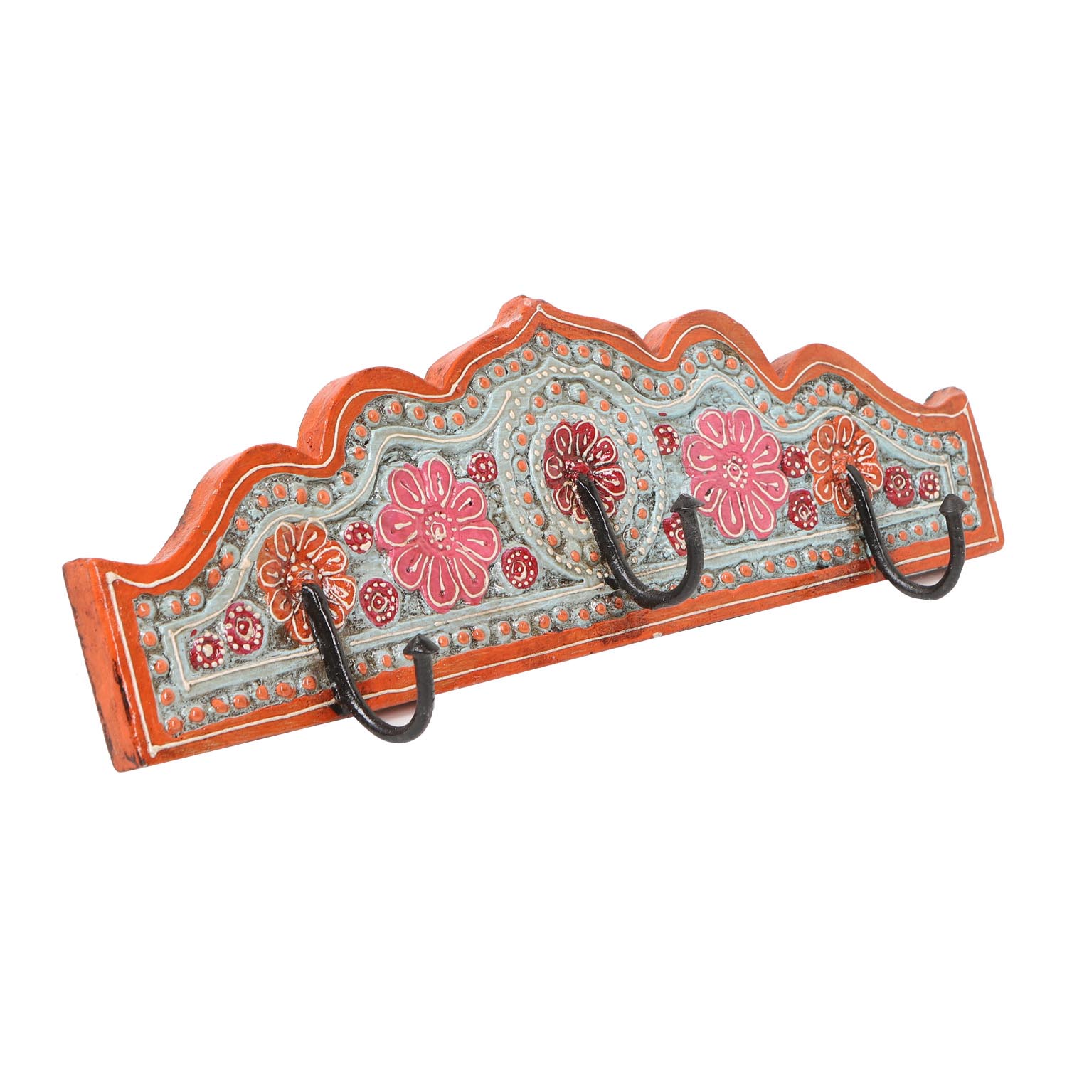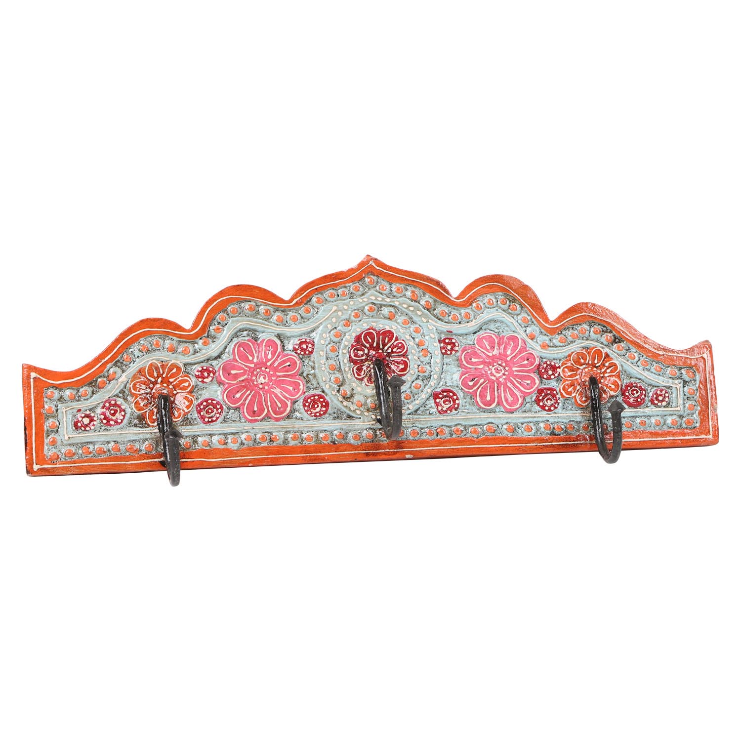 Questo appendiabiti orientale "Taj Mahal B" è realizzato in legno intagliato a mano, dipinto a manoe decorato con bellissimi motivi floreali.