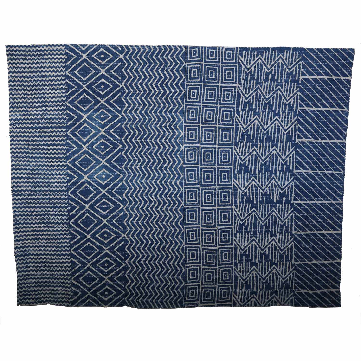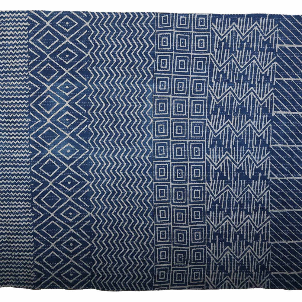 Il copriletto orientale Kantha blu è realizzato al 100% in cotone, un materiale morbido e resistente. È stato realizzato interamente a mano. Motivi etnici blu e bianchi decorano il piumino sul davanti. Utilizzabile in modo flessibile: sia come copriletto in camera da letto che come copriletto o coperta in soggiorno. Il nostro piumino sta bene ovunque ed è un elemento decorativo che vale la pena vedere.