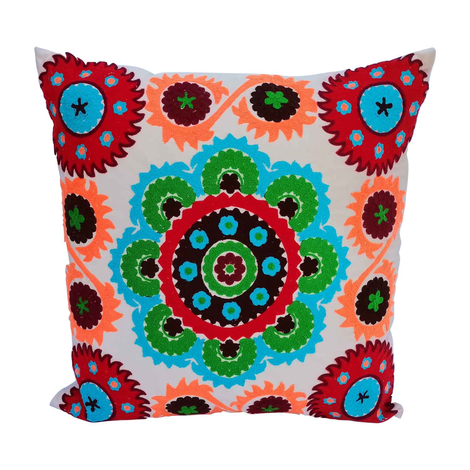 Quello ricamato cuscino mandala orientale Kera è decorato con fiori astratti ornamenti Ricamato a mano in colori forti, sarà sicuramente unico. Con questo accogliente cuscino per divano non solo aggiungerai accenti allegri a qualsiasi spazio abitativo, ma ne avrai anche uno Cattura l'attenzione, al quale nessuno può sfuggire.