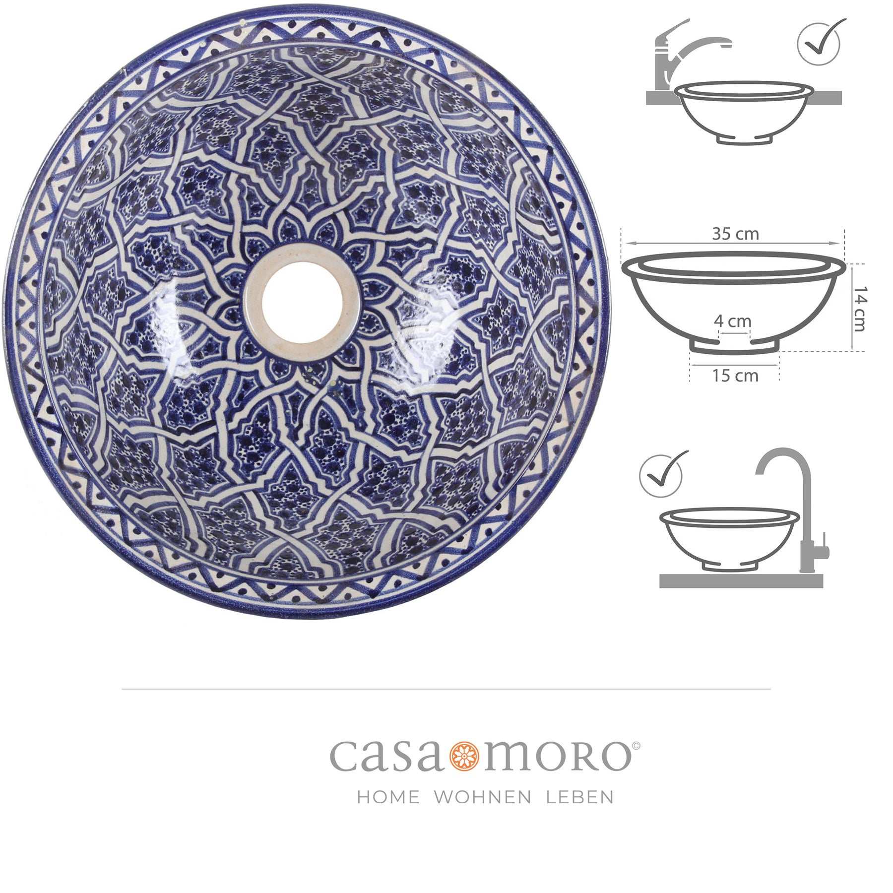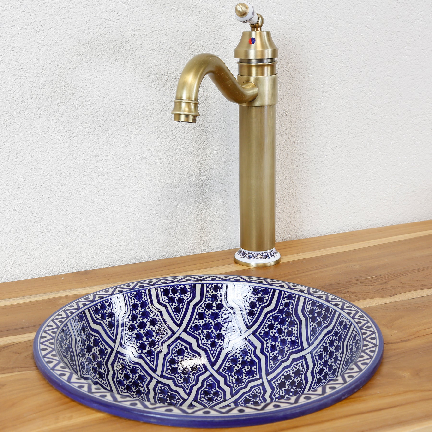 Che si tratti di un bagno elegante o di un WC per gli ospiti, questo lavabo realizzato a mano è molto più di un semplice elemento funzionale. Porta il fascino marocchino e l'espressione artistica nella tua vita quotidiana. Il design è particolarmente efficace su un lavabo in legno o pietra naturale.