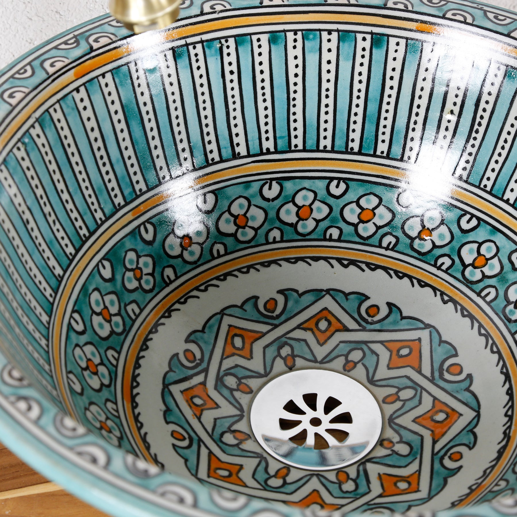 Questo lavabo rotondo da appoggio porta la secolare arte della ceramica di Fes direttamente a casa tua. La città marocchina è considerata il centro della ceramica tradizionale: lì i lavabi da appoggio vengono ancora realizzati a mano con amore, dipinti artisticamente e cotti in forni tradizionali. Il risultato è un pezzo davvero unico con autentico carisma e fascino orientale, perfetto per la progettazione individuale del bagno.