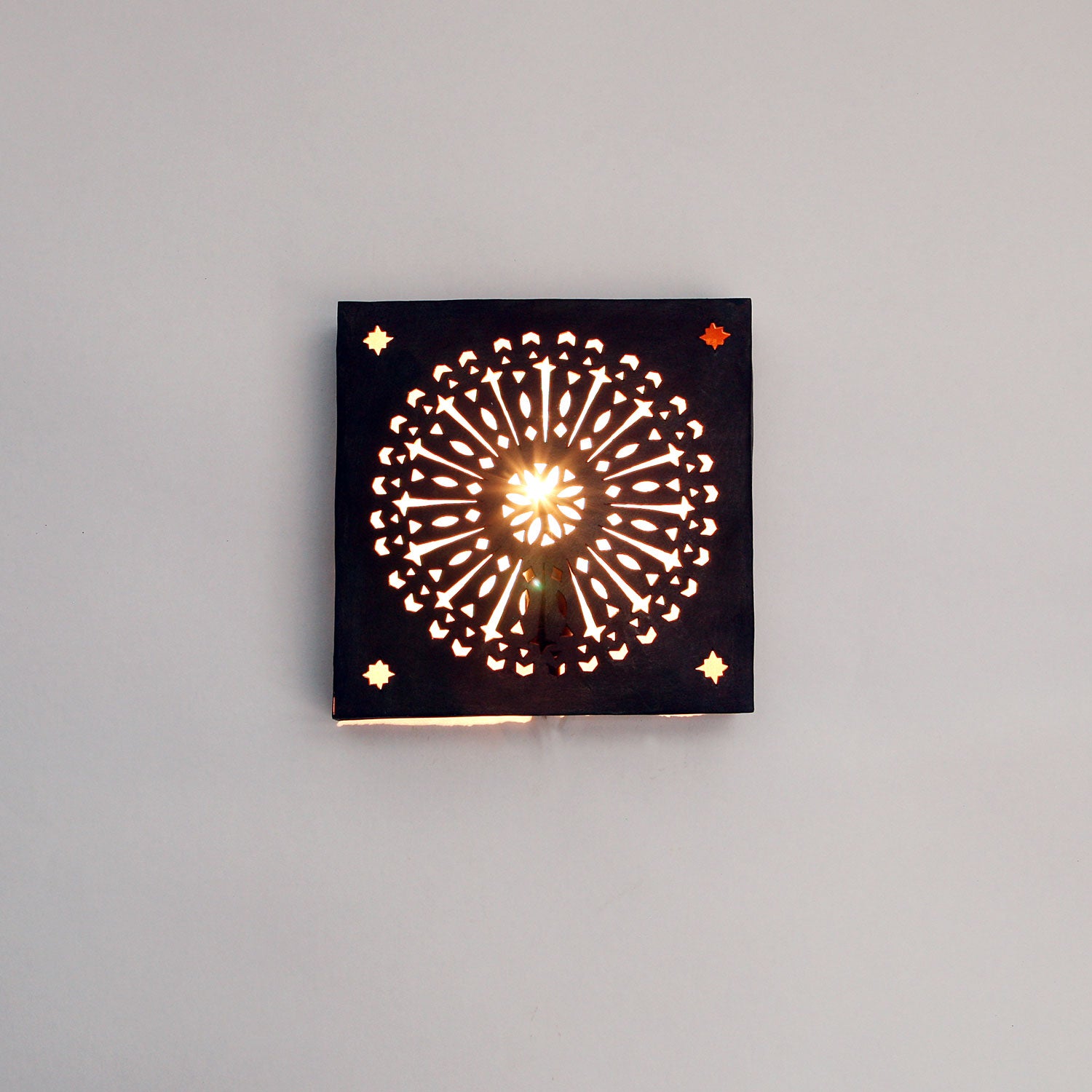 "Marokkanische Wandlaternen dieser Art haben einen einzigartigen Licht- und Schattenwurf. Durch die unzähligen Ausschnitte bricht sich das Licht in viele kleine Punkte und zaubert so eine traumhafte Atmosphäre."