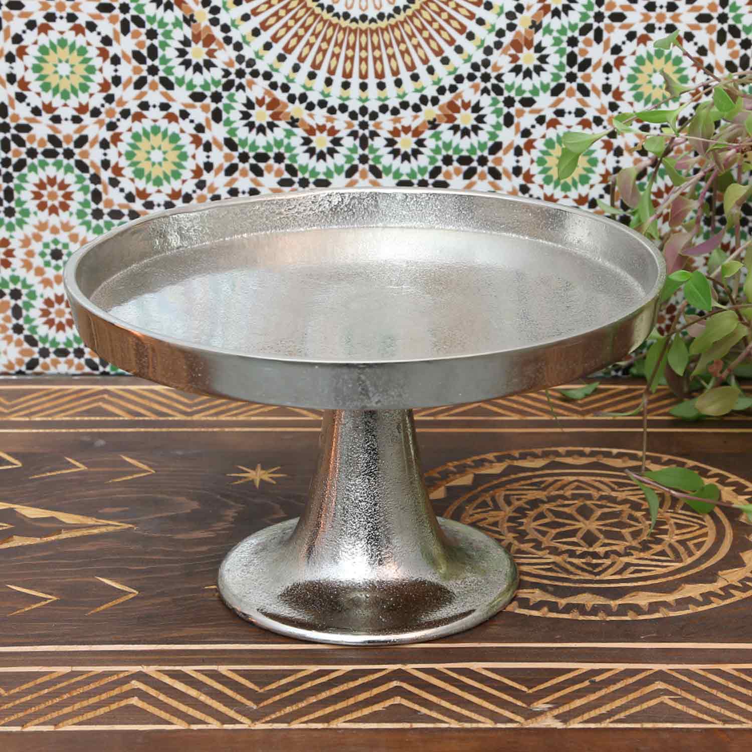 Il colore del vassoio rotondo è Catania Argento. L'argento emana sempre un tocco di lusso ed eleganza, e si adatta senza problemi a qualsiasi zona living. Sia come vassoio o piatto da torta in cucina, come piatto da portata in soggiorno, come piatto da frutta in sala da pranzo o come Piatto decorativo per la prossima celebrazione, matrimonio, compleanno o Natale, questo vassoio da portata è un assoluto colpo d'occhio.