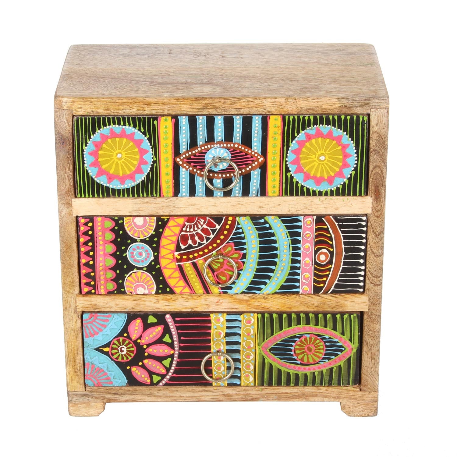 Uno bellissimo dipinto a mano e decorato Cassettiera iom Stile africanoche ogni stanza con la sua Unicità arricchito.