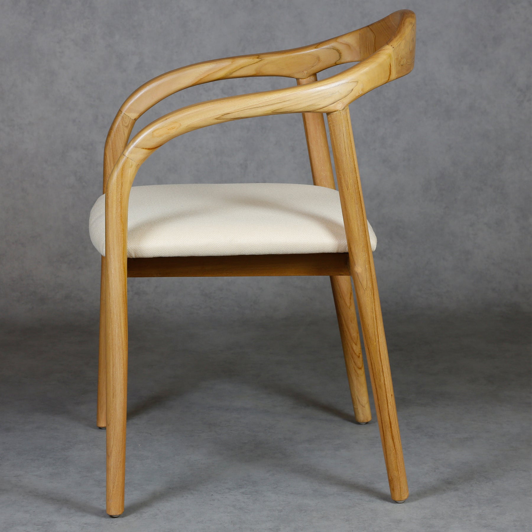 Sedia da pranzo con schienale: Design ergonomico con lato e schienale. Realizzata in massello di teak, questa sedia è versatile: sia come sedia da pranzo al tavolo da pranzo, come sedia imbottita nella sala da pranzo, nella sala d'attesa o in camera da letto.