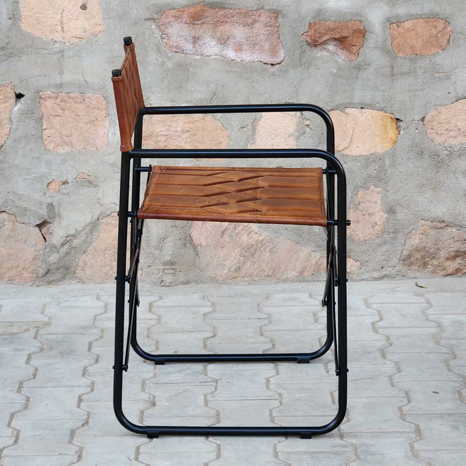 Sedia pieghevole, sedia da regista con rivestimento in vera pelle