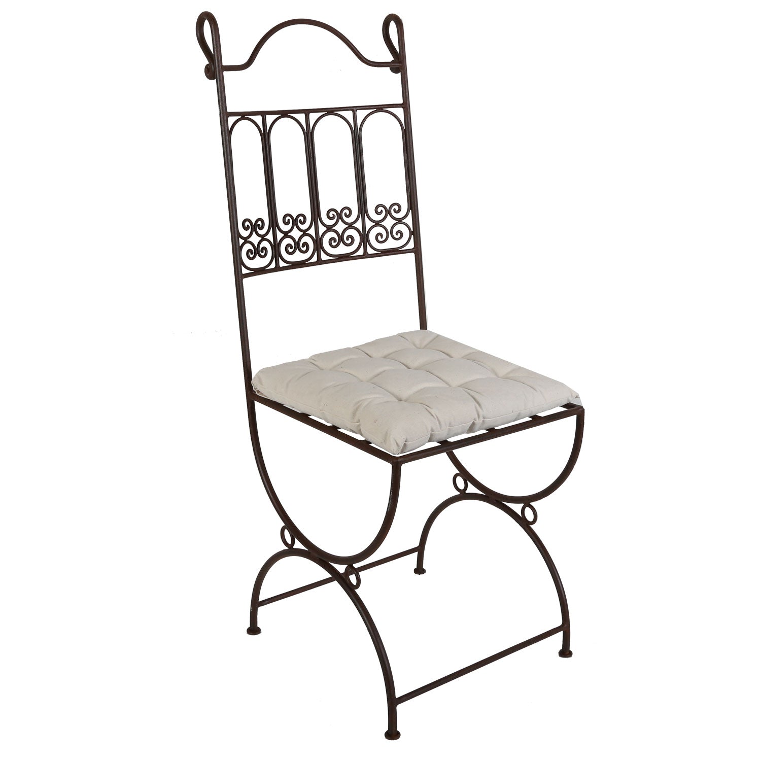 Il sedia in ferro battuto Pedro nasce in un'azienda tradizionale a Marrakech, nel cuore del Marocco. Con il suo forma rettilinea è lui quello giusto? complemento ideale per tutti i tavoli da pranzo in mosaico quadrati e rettangolari. In particolare i modelli con formelle squadrate si adattano perfettamente, poiché la struttura della seduta quasi la ripete.