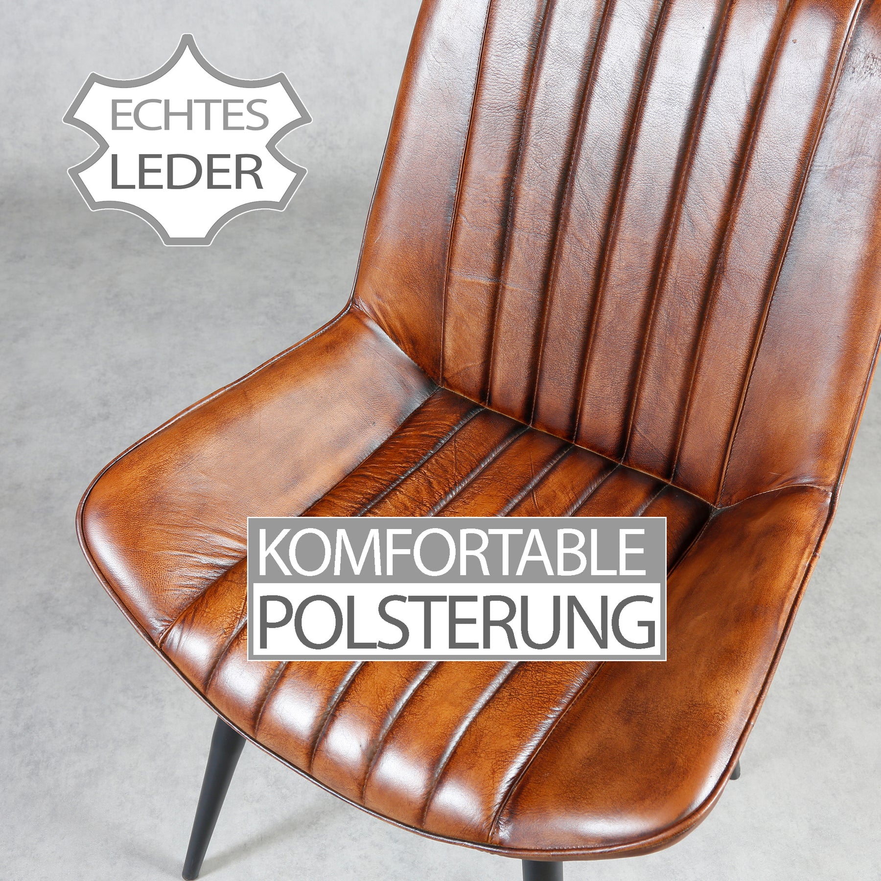 Eleganza e funzionalità: La sedia unisce la bellezza della vera pelle con la stabilità di una struttura in metallo di alta qualità. Il caldo colore marrone si integra armoniosamente in diversi stili abitativi. Il telaio in robusto ferro garantisce un'elevata stabilità.