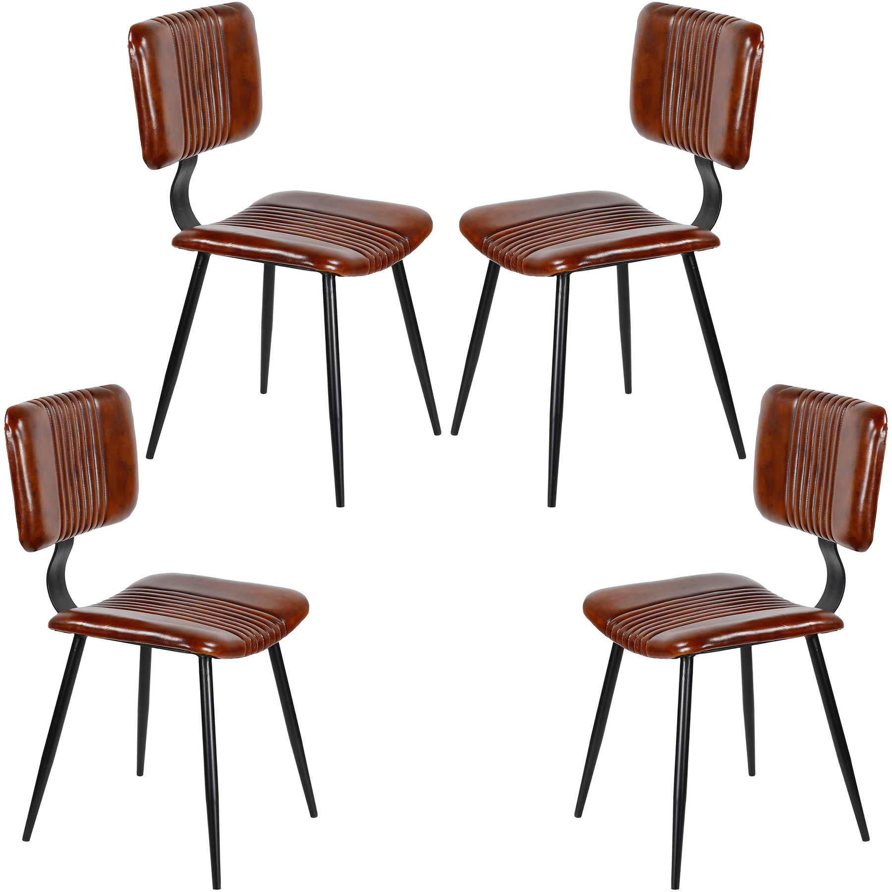 Questo set di sedie in pelle unisce un design senza tempo con un piacevole comfort di seduta. Realizzate in vera pelle di alta qualità dall'elegante aspetto marrone e combinate con una robusta struttura in metallo, queste sedie da pranzo sono versatili: ideali per la sala da pranzo, il soggiorno, l'ufficio o la sala d'attesa.