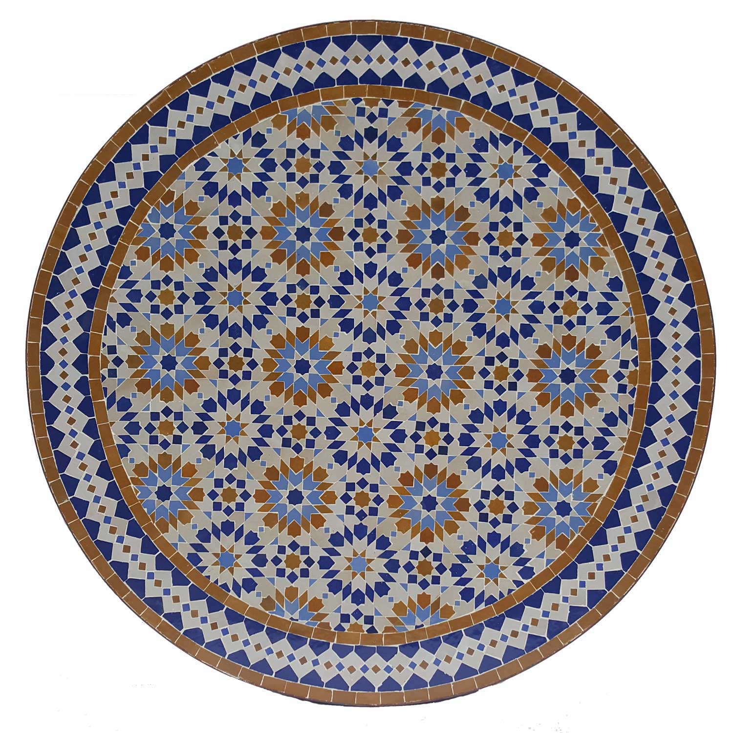 Un bordo diamantato è tipico di uno Tavolo in mosaico marocchino. Oltre alla funzione decorativa, ha anche una funzione simbolica: come occhi stilizzati (occhi da strega), i diamanti quadrati dovrebbero proteggere le persone da ogni tipo di male. Lo inseriscono in questo quadro incastonatore di mosaici il diversi modelli e ornamenti. Tuttavia, una cosa è sempre la stessa: The pezzi di mosaico smaltato vengono prima rimossi con un martello affilato piastrelle Zellige realizzate artigianalmente sbozzato. Ogni piano del tavolo lo è puramente artigianale e quindi assolutamente unico.