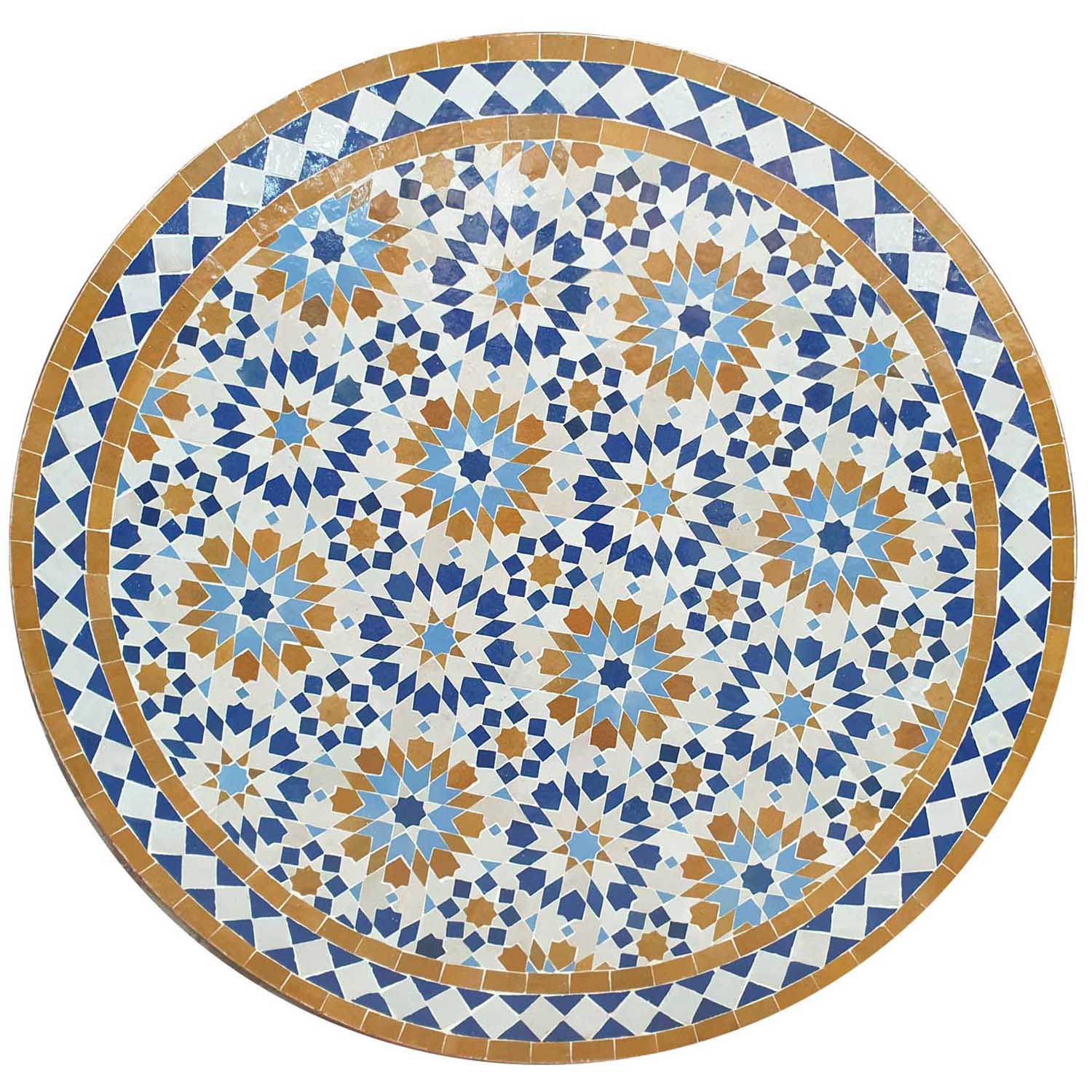 Il colore Blu può essere trovato qui Tavolo in mosaico in due tonalità molto diverse: azzurro e blu scuro. Esalta ancora meglio la brillantezza delle piastrelle zellige color ocra. Bordo diamante in bianco/blu. Scegli questo Tavolo in mosaico, se tu un colpo d'occhio nel tuo giardino desiderio. Secondo aspetto carino: il mosaico ti invita a esplorare la sua diversità.