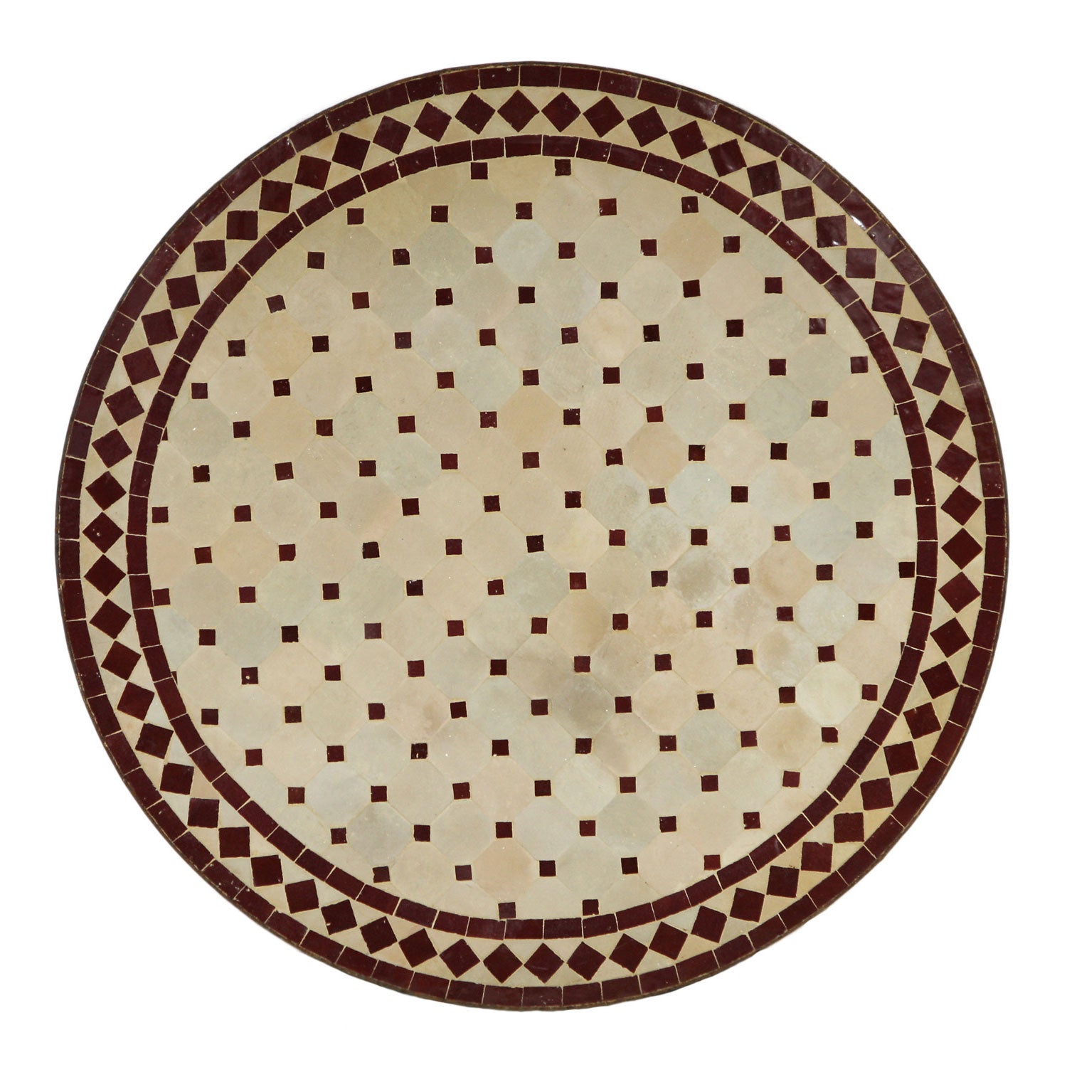 • Mosaico composto da tessere zellige smaltate e tessere in argilla non smaltata. Colore: Bordeaux/Naturale