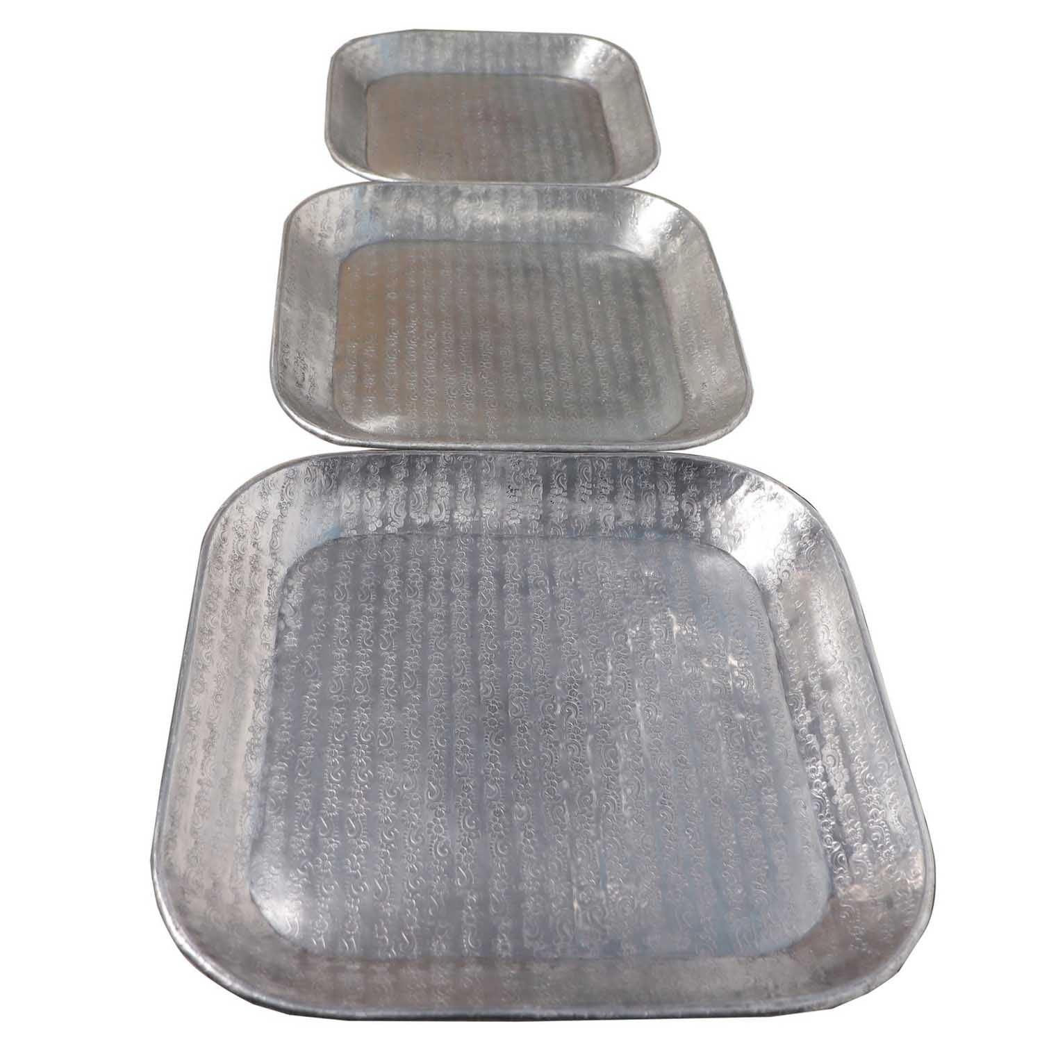 I nostri vassoi in alluminio donano alla vostra cucina o al soggiorno uno speciale tocco orientale. I vassoi più piccoli sono progettati per essere inseriti in quello più grande per riporli comodamente. Vassoio da portata più grande per una portabilità spaziosa, dimensioni perfette per qualsiasi cibo e stoviglie, porta comodità in cucina e sala da pranzo. Oltre a servire bevande e stuzzichini, colazione, puoi anche utilizzare questi vassoi per esporre quotidianamente candele, bicchieri e altre decorazioni.